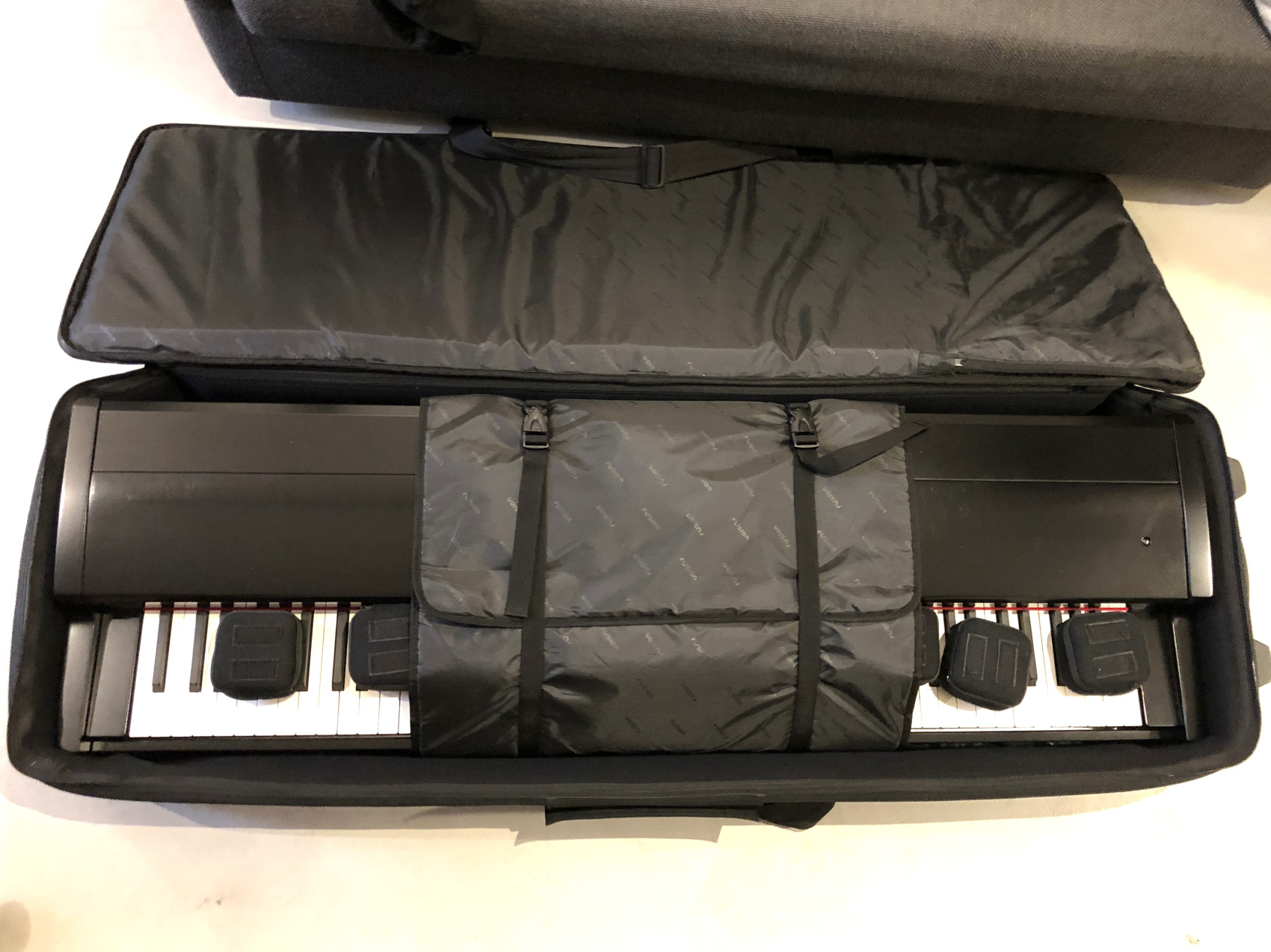 Nejdokonalejší simulace akustického klavíru (kladívková mechanika), vč. kompletního příslušenství (pedály, kabely, notový pultík) a originální krabice. Dodám i s futrálem Fusion Keyboard 13 Gig Bag (pův. 4 tis. Kč) a protiprachového potahu na klávesy Kawai DC88 XL (pův. 800 Kč). K vyzvednutí v Praze, příp. možno dovézt.