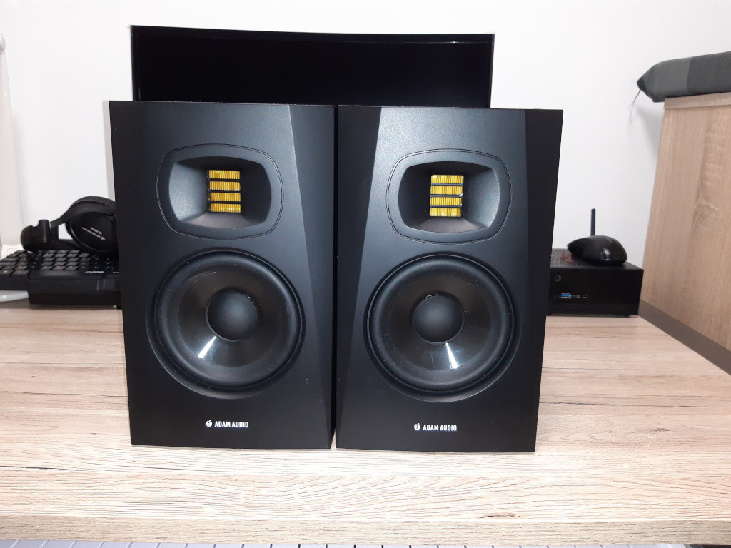 Dobrý den, prodám studiové monitory Adam audio t5v. Pro studiové monitory nemám využití kvůli sousedům, proto budu přecházet na sluchátka a je škoda je nechat nevyužité. Monitory jsou v skvělém stavu skoro vůbec nepoužívané. Zdarma přidám 2x xlr kabel na propojení se zvukovou kartou.