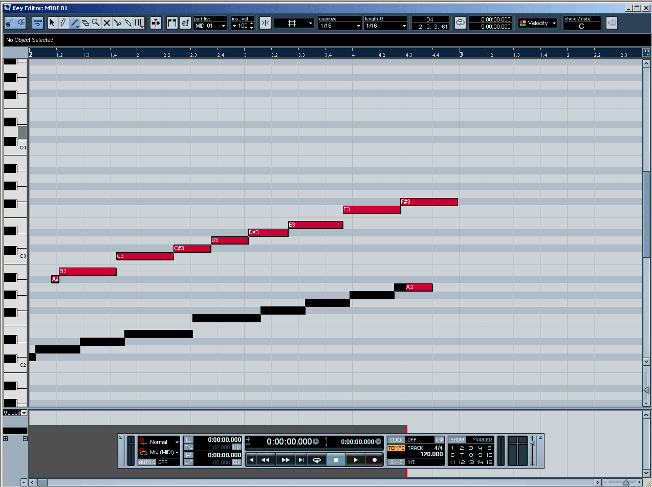 Ahoj, rekl jsem si ze se ze zvedavosti kouknu na Nuendo, jak se lisi od Cubase a tak jsem si nainstaloval H2O verzi 3.2 (zkousel jsem i 3.1.1). Narazil jsem ale na podivne chovani midi editoru, ktere v Cubase nepozoruju. Kdyz pomoci line tool zkusim zadat nejake eventy (a je jedno, jestli v in place editoru, nebo si ho primo otevru), dostanu jenom radu cernych obdelniku, ktere jsou po blizsim prozkoumani tvoreny stovkami malych eventu (prestoze mam delku eventu nastavenu na 1/16). Kdyz vypnu snap (horni rada na obrazku), eventy jsou delsi, ale opet se neda mluvit o 1/16. Setkal se nekdo s podobnym chovanim ? Je to chyba "try before buy" verzi ? Ma Nuendo nekde neco defaultne nastaveno jinak nez Cubase ? Neni to fatalni, s Nuendem si jenom hraju, ale zajimalo by me to :) Diky