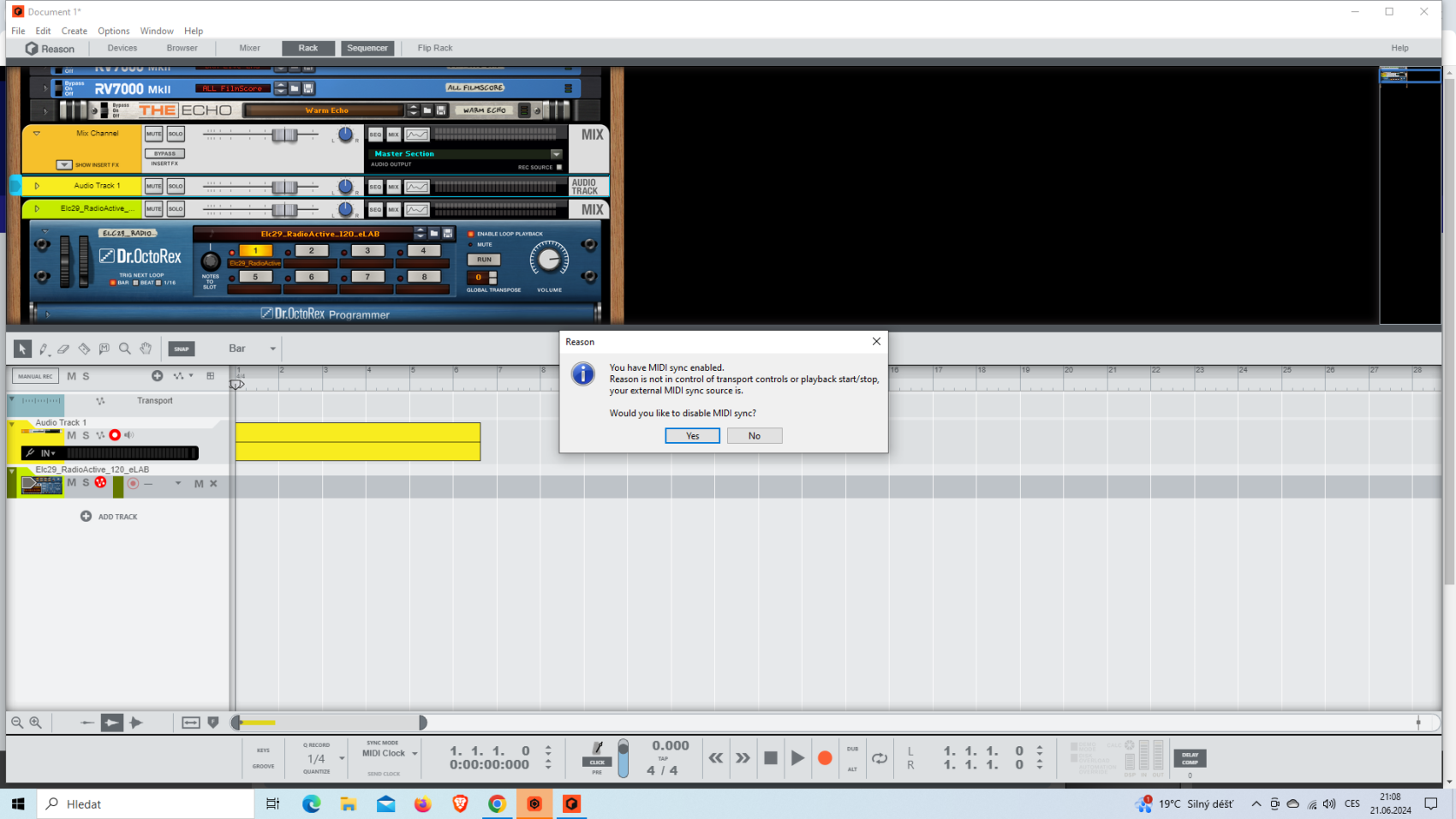 Mým přáním je nahrát si stopu ze synetizéru do Reasonu a dál s ní pracovat. Díky.