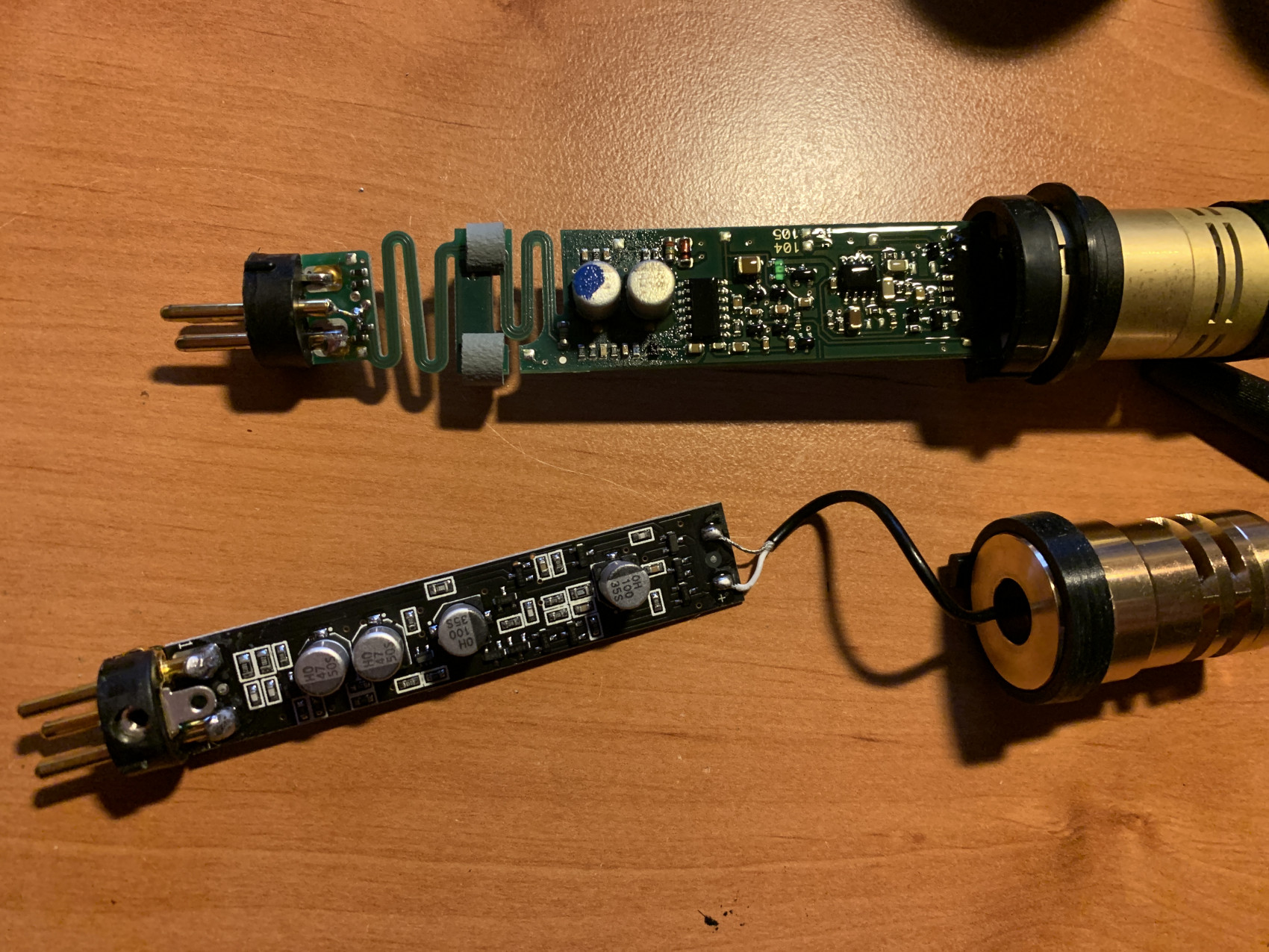 proto připojuji snímky, nahoře skutečný Neumann obvod, dole čínský obvod, který samozřejmě pro elekret nepotřebuje 48-60 V napětí...