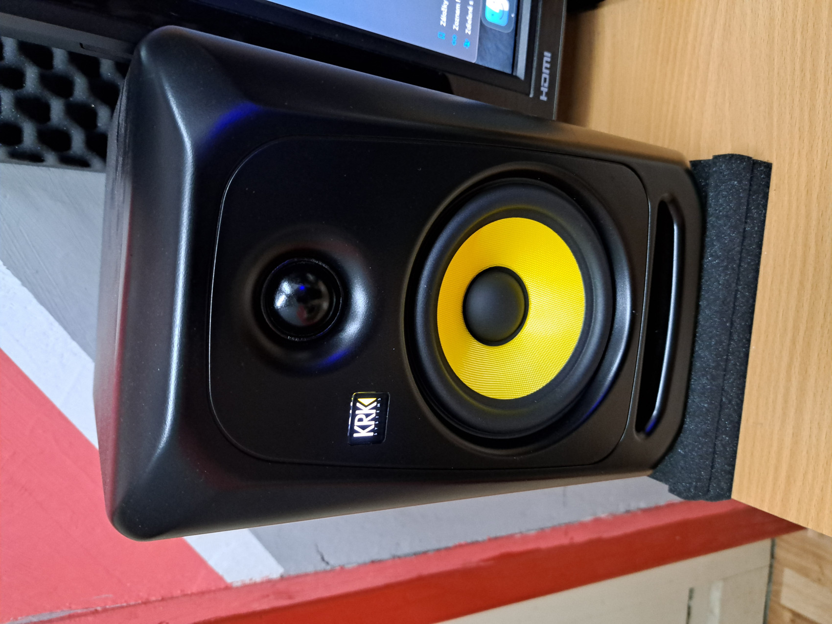 Monitory si dej určitě výš. Tweeter by měl být v urovni uší. Pak bych zvážil kalibraci skrz Sonarworks, pokud ještě nemáš.