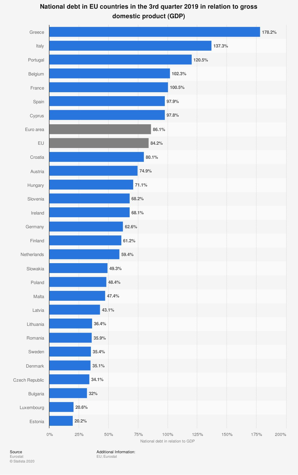 Uspory vs dluhy. Debata o eurobondech, za ktery by rucili vsichni, ale prakticky ty zespod prebiraj rizika tech nahore. Nevim jestli ty potencialni eurobondy jsou planovany jen pro zeme platici eurem... ale je hezky videt jak je kdo moc zadluzenej vzhledem ke svymu HDP.