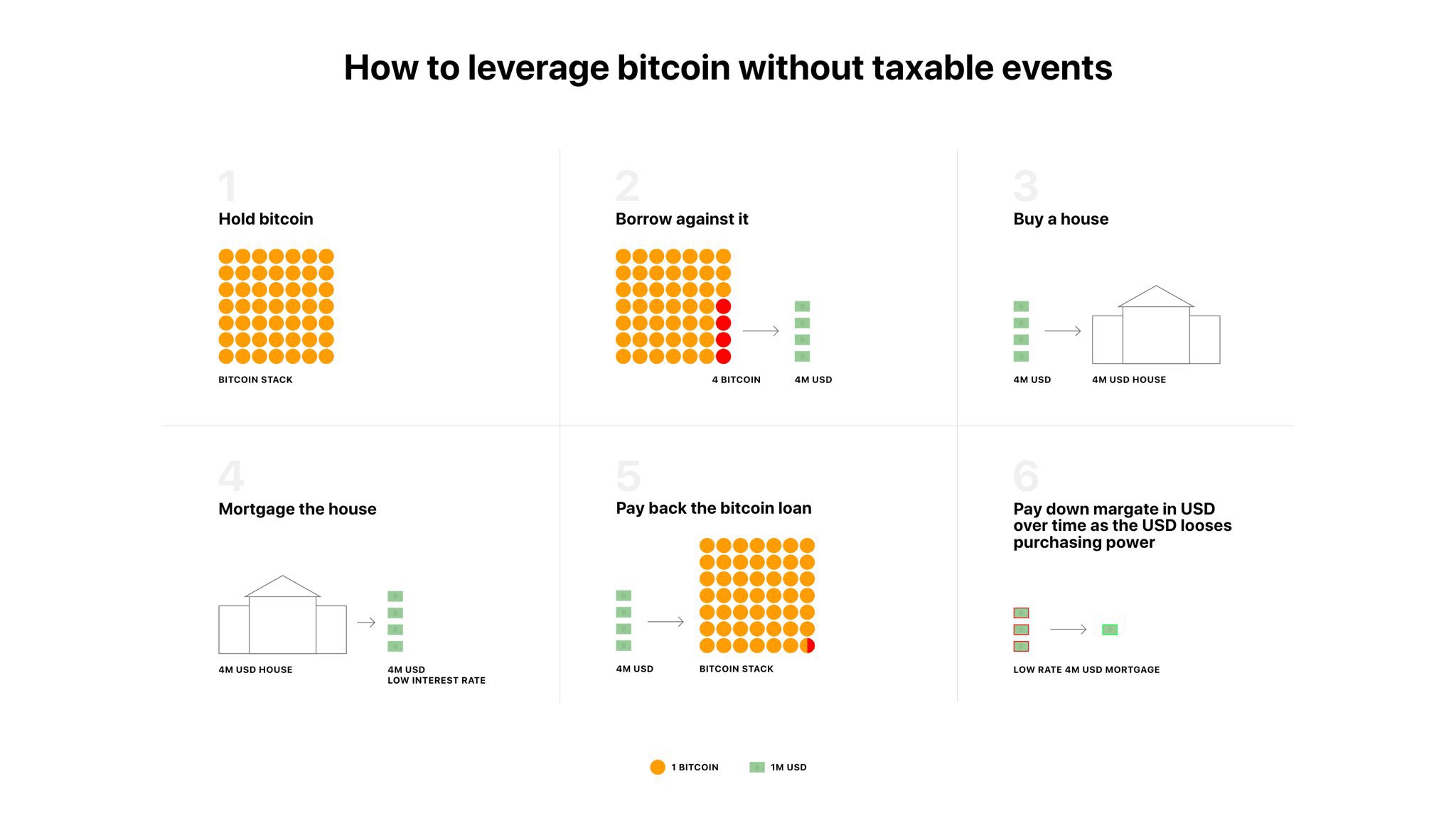 este drz.. za 2-3 roky sa stabilizuje sektor DeFi (decentralizovabe financie)... potom si pozicias peniaze tak ze ako kolateral (zalohu) pouzijes ten Bitcoin.. cast pozicky premenis uas na Bitcoin aby ti splacal splatky, cast si nechas na fungovanie... vyhoda : nic nemusis danit (pojde o pozicku tie nepodliehaju zdaneniu lebo to nieje zisk)