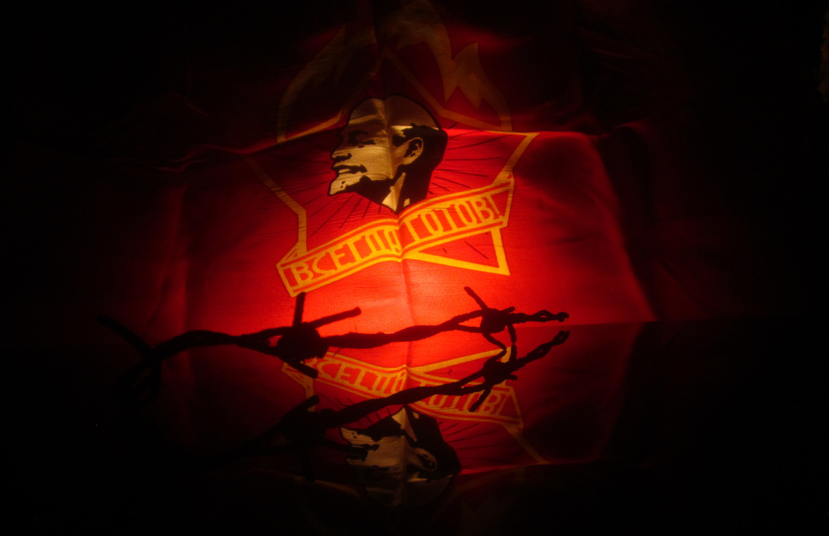 Z poslednych, co si sem dal, sa mi tato pozdava z odstupom NAJ. Take trosku LQ retro ... sedi to k teme. Dokonca aj tie nechcene ohyby textilu tam robia zaujimave ohranicenie. A samozrejme - Vladimir Iljic ziariaci nad tu vsetku zapadnu tmu a temnotu.