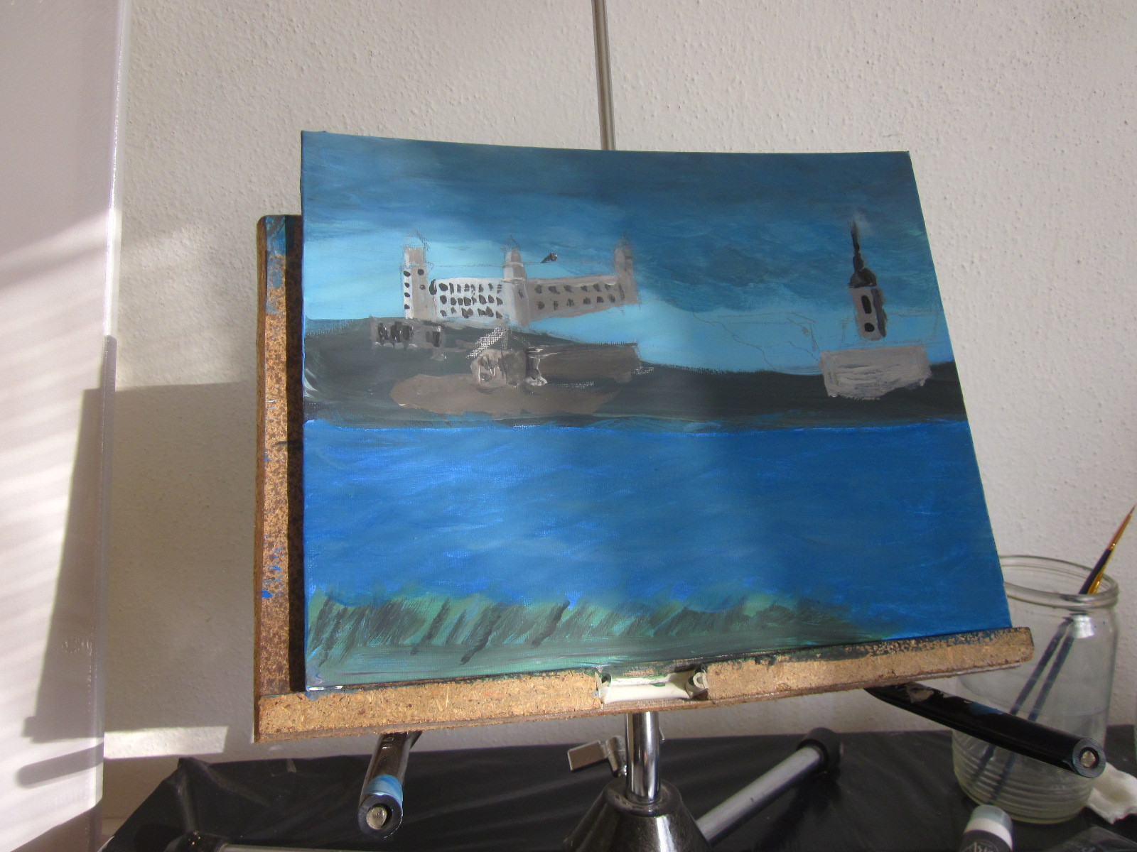 V ľavom strede môžete vidieť moje plátno kde je jasné, že volím volnú alternáciu zobrazenia hradu , ktorá evidentne bude mať kvality detskej malbičky .. ale hromadu skúsenosti nadobúdam každým šmahom štetca.