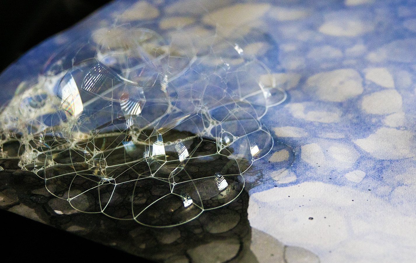 Prostě pastelkama a pak rozpatlal štětcem s vodou.